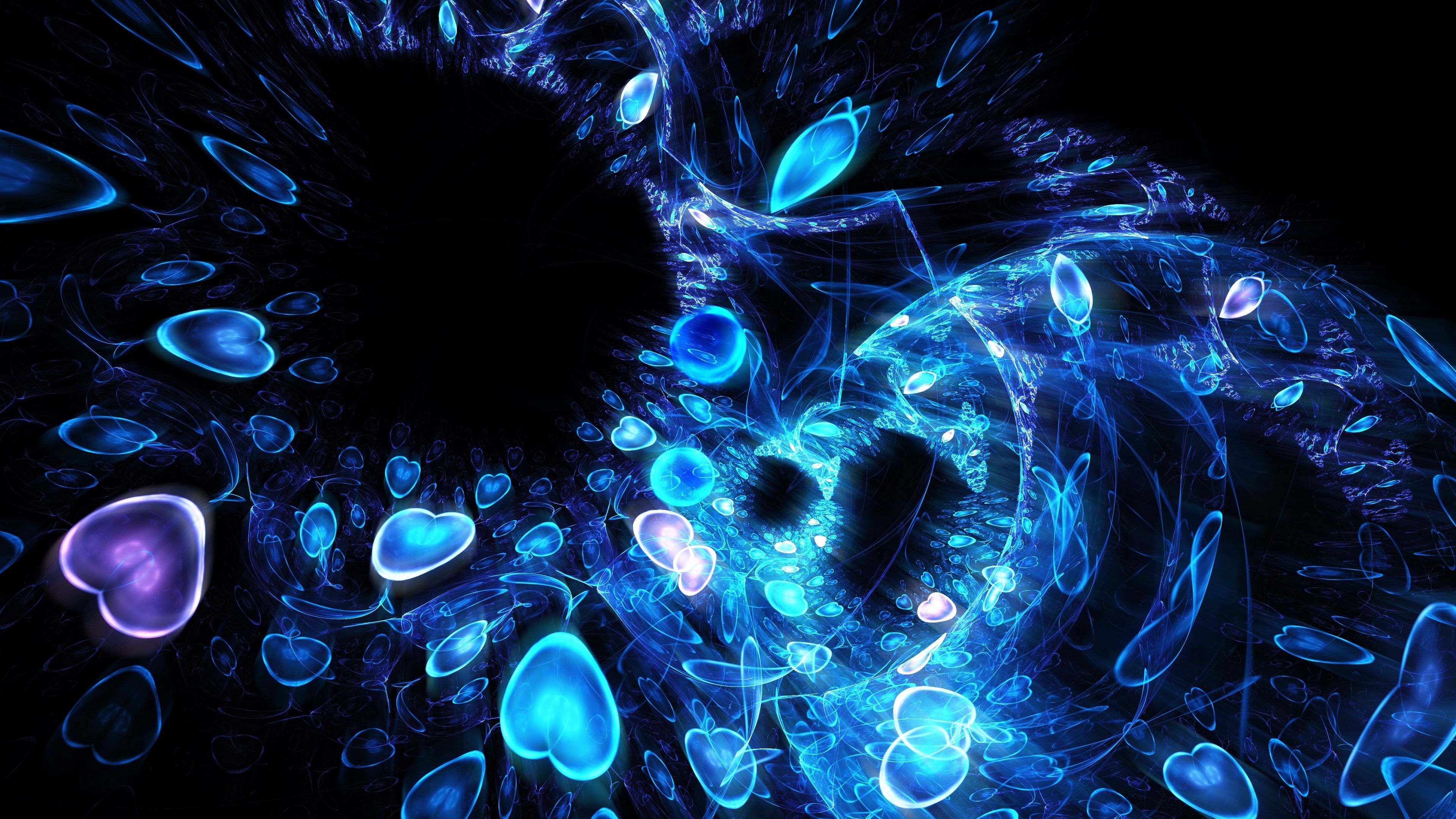 Fractal Shape Heart Patterns Neon HD & 4K Wallpaper (3840x2160)