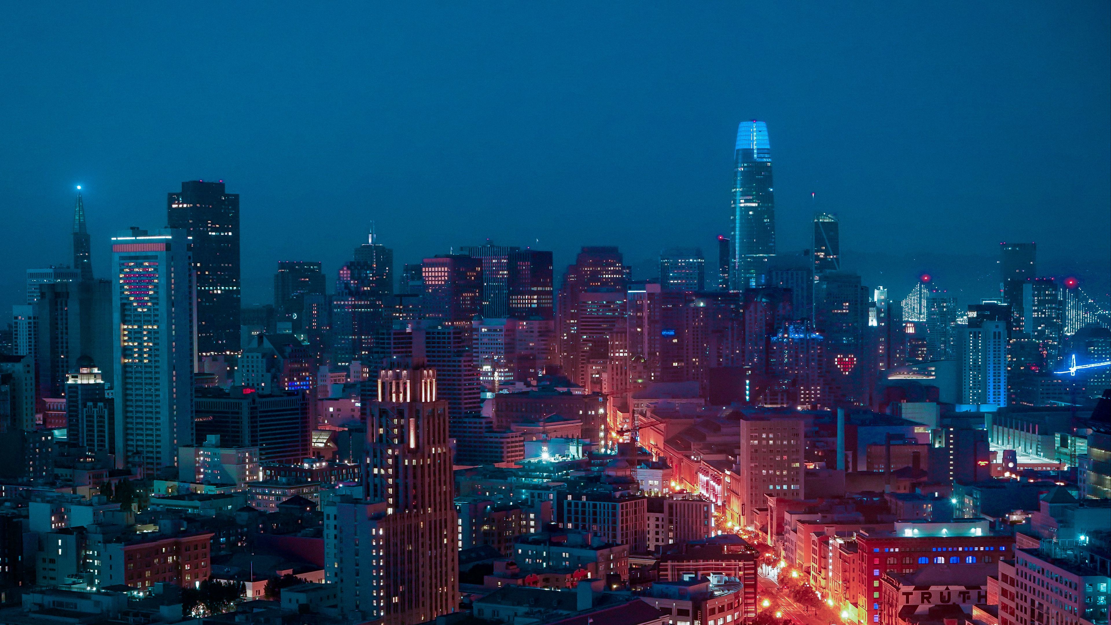 Skyscrapers Night City Buildings HD & 4K Wallpaper (3840x2160)