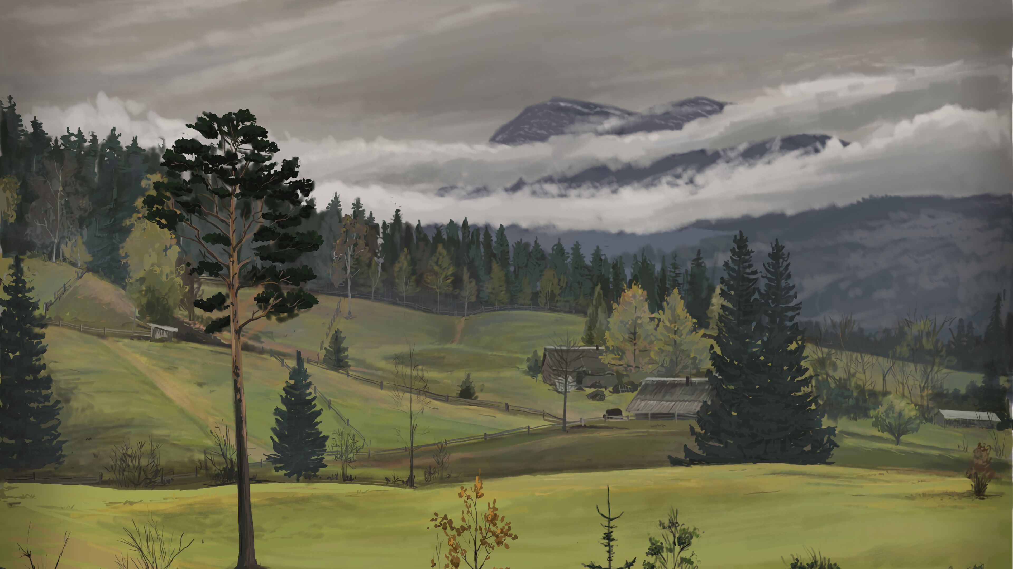 Pine Fence Forest HD & 4K Wallpaper (3840x2160)