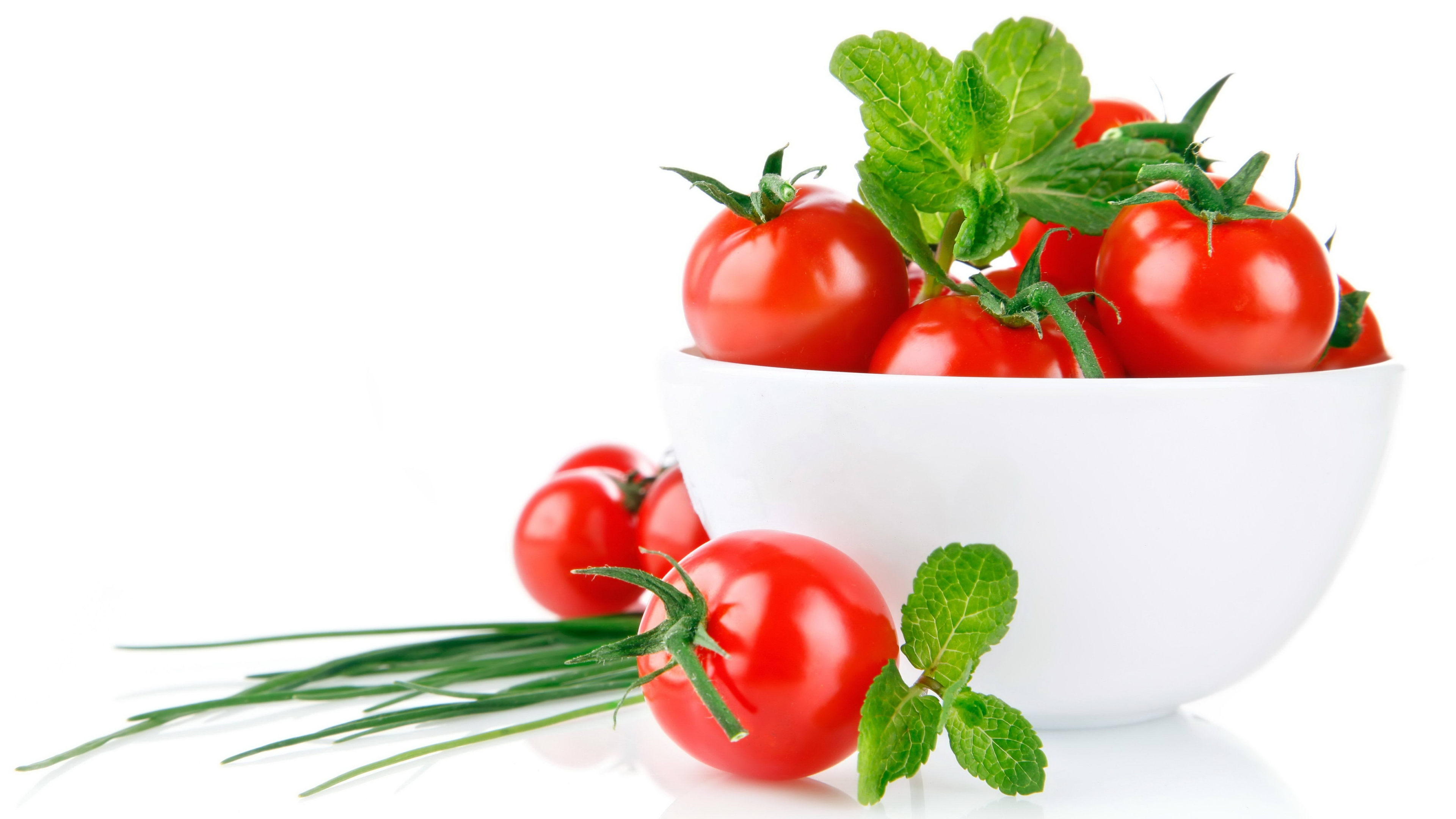 Tomato White Green Bowl HD & 4K Wallpaper (3840x2160)