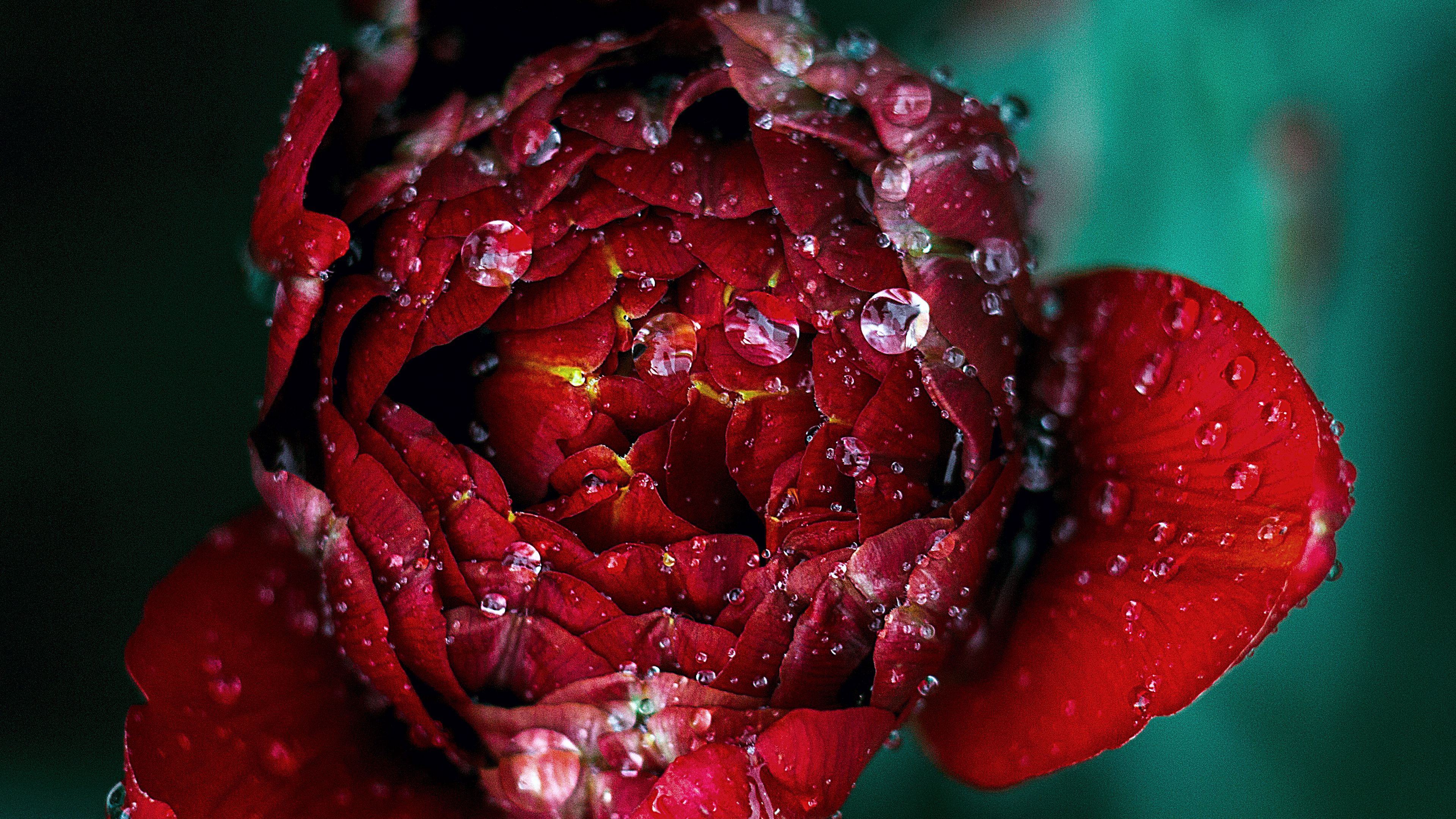 Red Flower Drops Close Up HD & 4K Wallpaper (3840x2160)