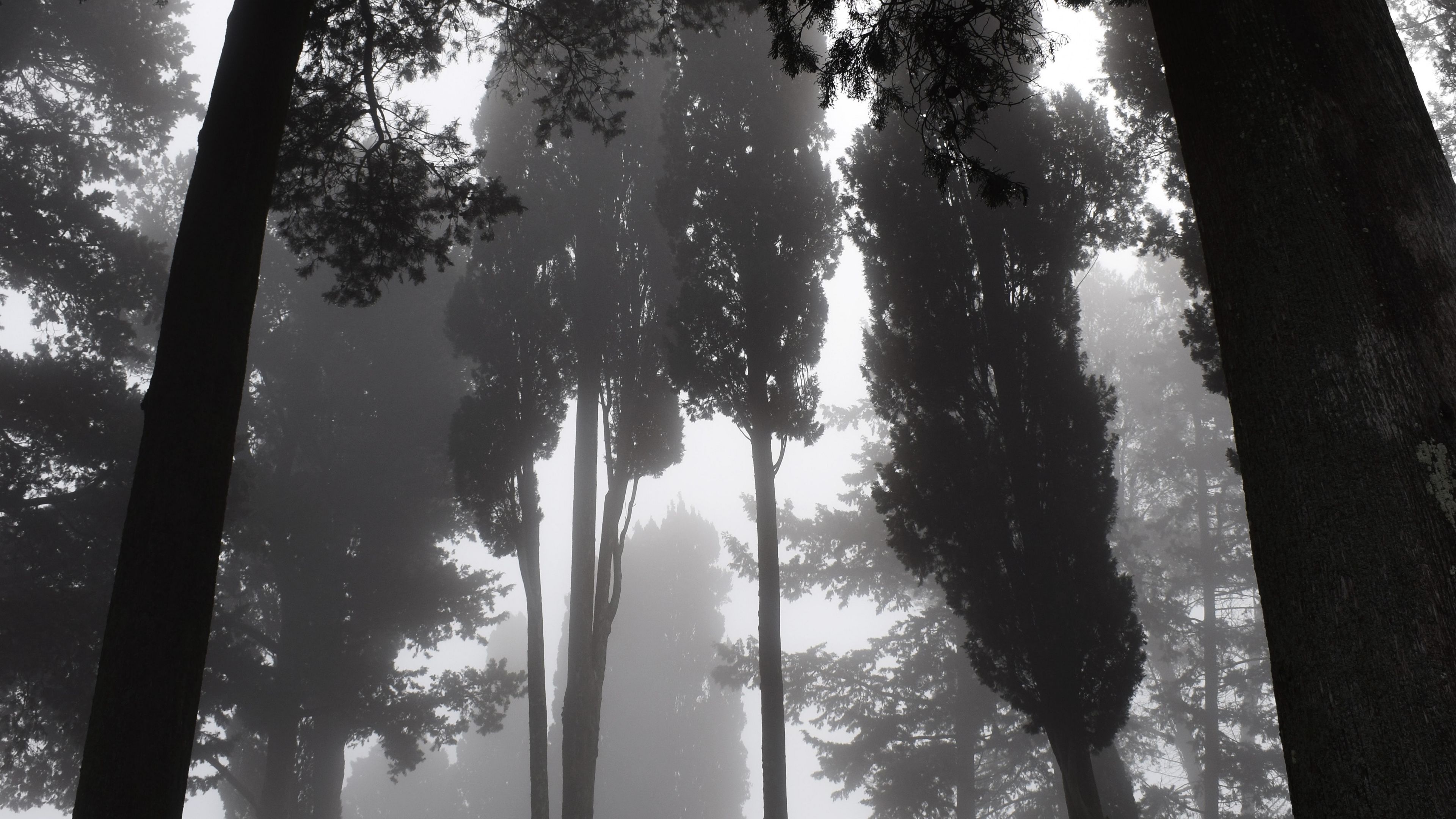Trees Fog Bw HD & 4K Wallpaper (3840x2160)