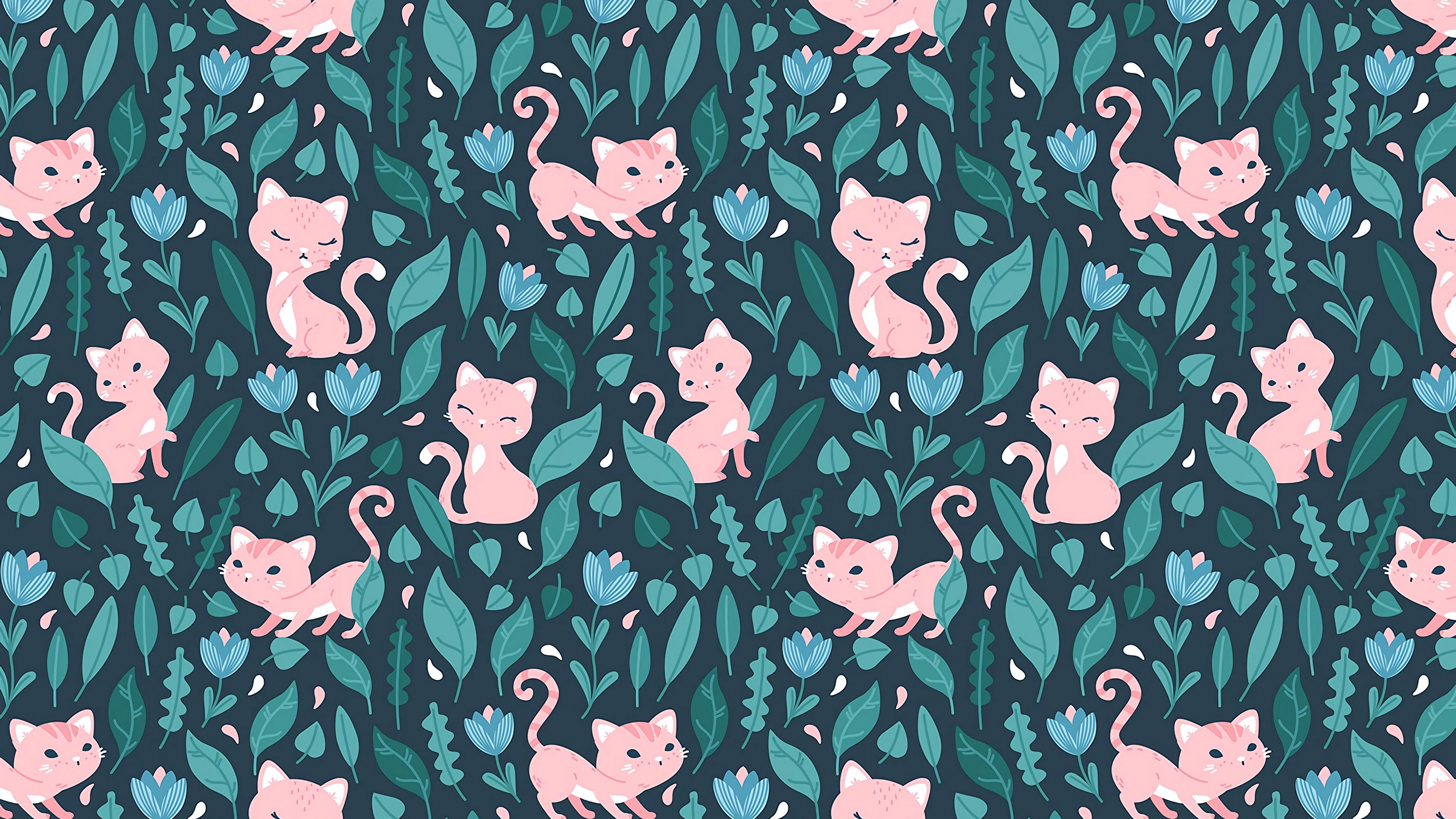 Cat Cute Flowers HD & 4K Wallpaper (3840x2160)