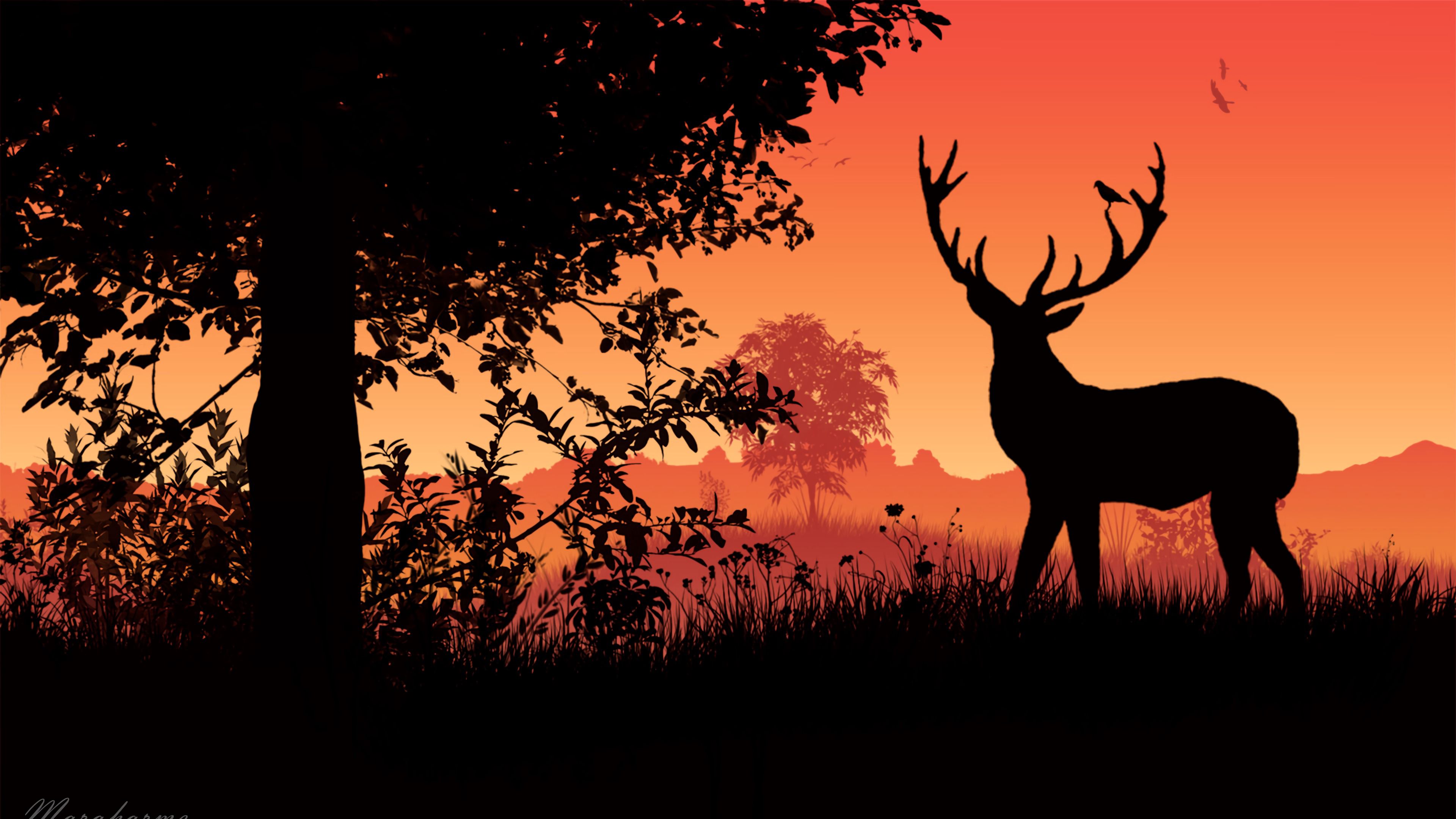 Deer Horns Sunset HD & 4K Wallpaper (3840x2160)
