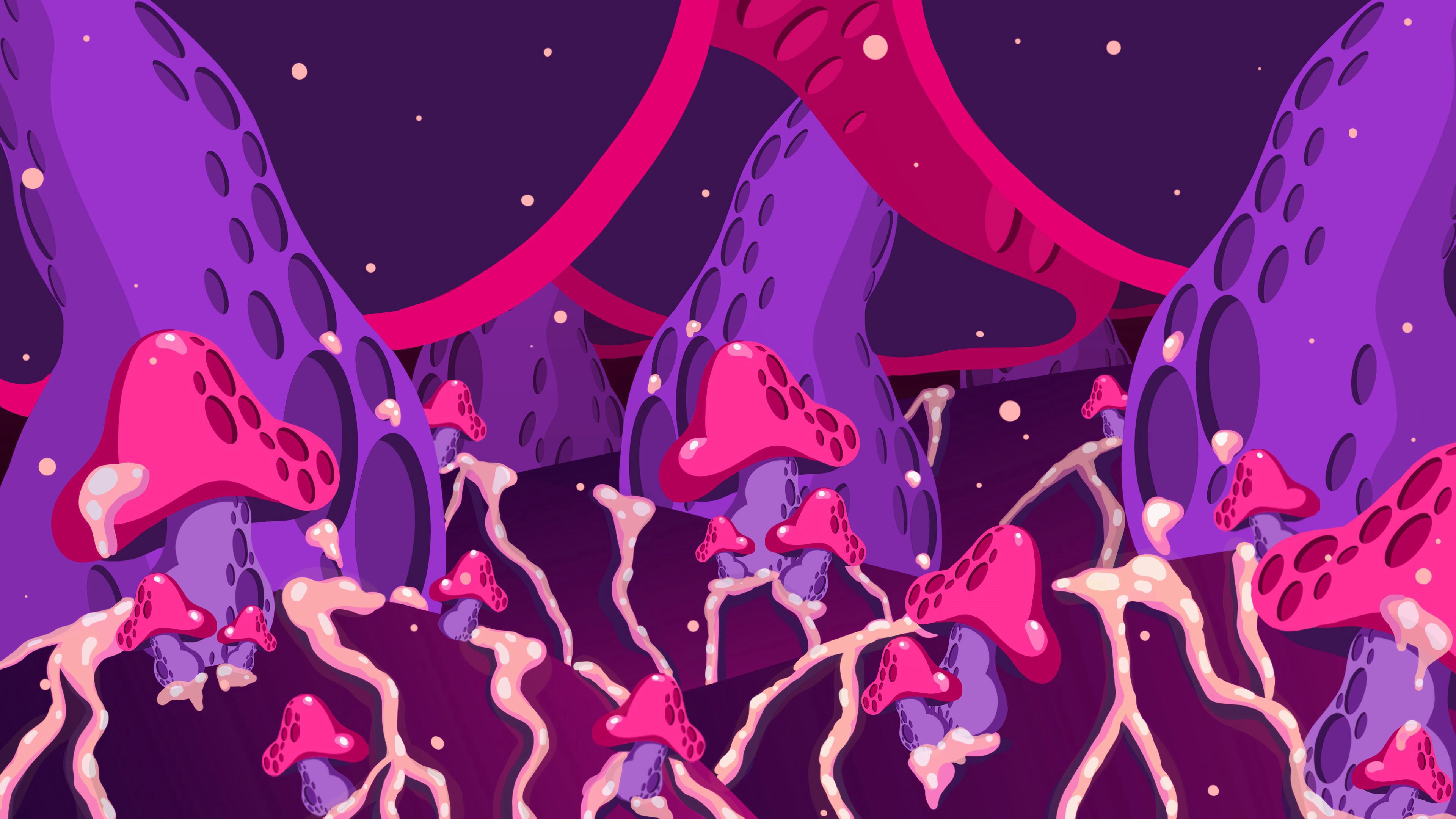 Mushrooms Abstraction Art HD & 4K Wallpaper (3840x2160)