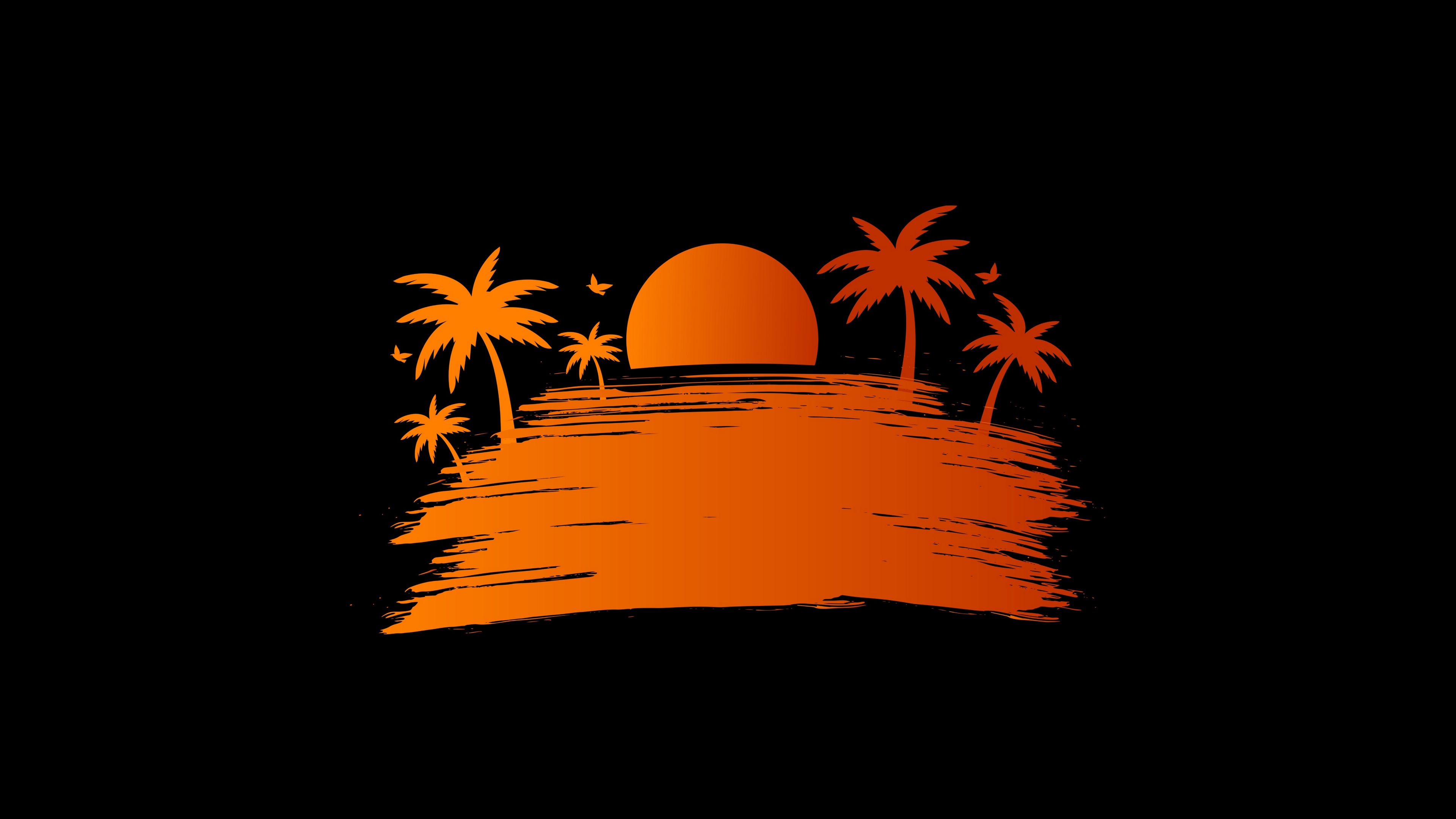 Palm Sunset Vector HD & 4K Wallpaper (3840x2160)