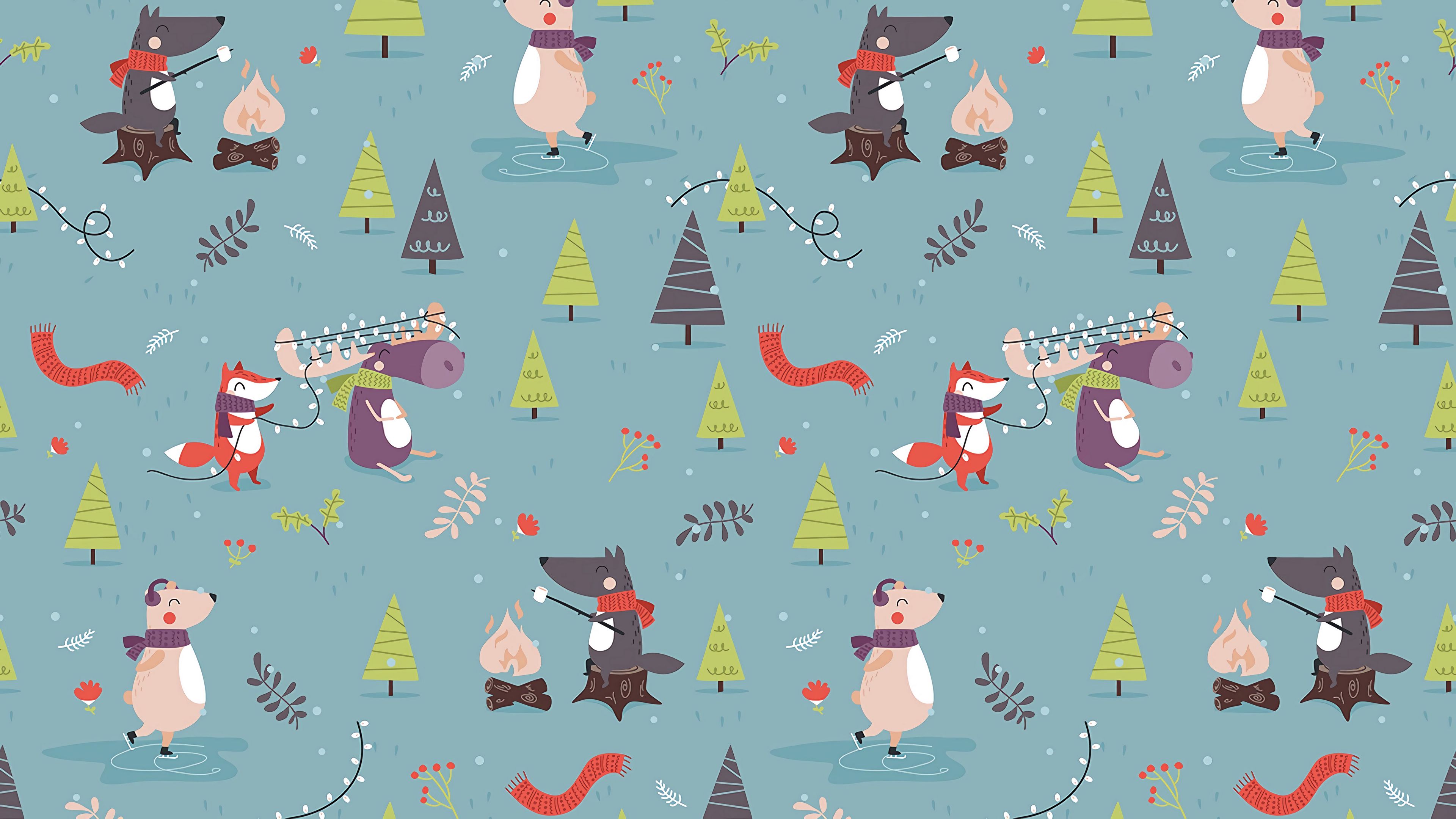 Pattern Animals New Year HD & 4K Wallpaper (3840x2160)