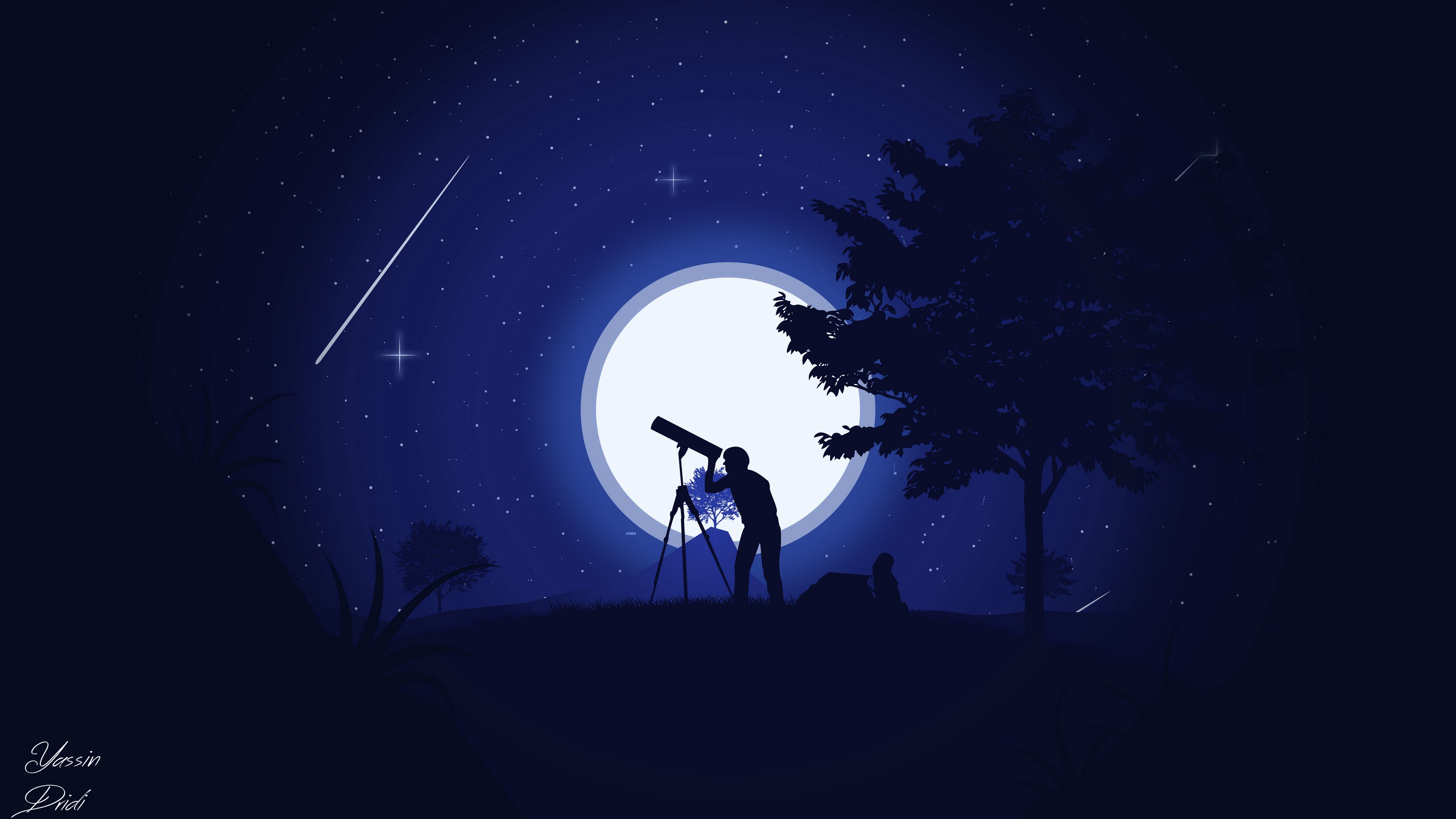 Silhouette Telescope Night HD & 4K Wallpaper (3840x2160)